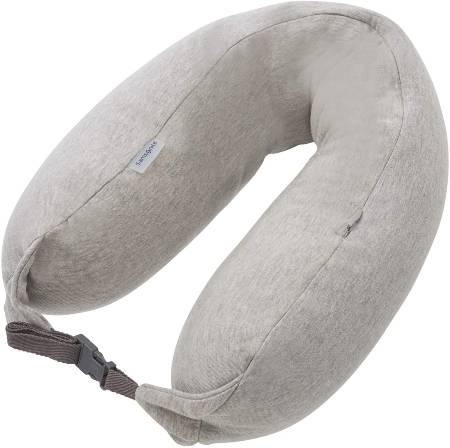 This travel pillow solves the issue with traditional U-shaped pillows in that it supports your chin by overlapping at the front to support your neck all around. There will be no need to worry about your head drooping forward as you doze off.